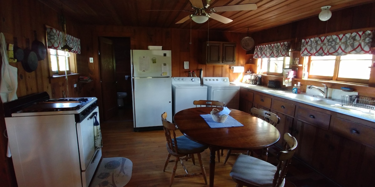 I first would want all to know that this cottage is not winterized & only available from june til mid oct. Im ready to take reservations for next year.... The cottage is quite large. We have a large indoor porch surrounded by large windows, a table that turns into snooker or some fun poker.. Many different chairs and a couch for relaxation or loads of fun.. also a outside porch with picnic table. Large dining room table for eats or board games. Direct tv is available. washer and dryer.