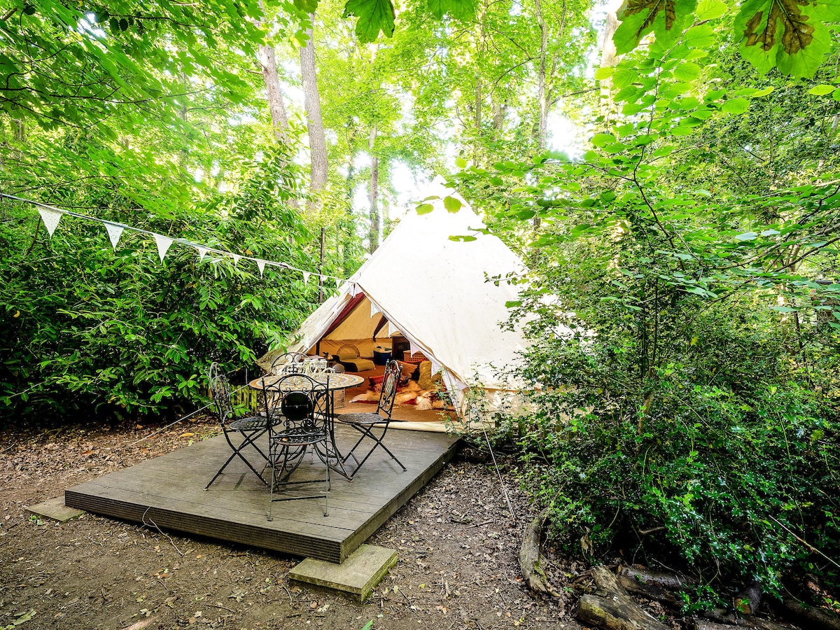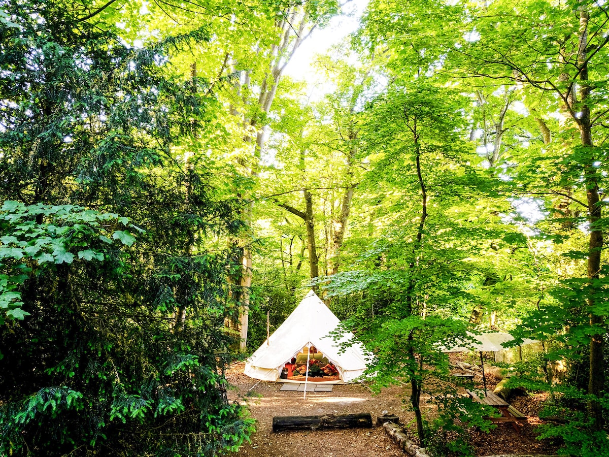 Relax in your own private bell tent, set in a woodland glade and supplied with all you need for a glamping experience in the New Forest National Park. Based on a small family run farm, we aim to provide a luxury camping experience with proper bed and bedding, power, furnishings, picnic bench and private cooking area with full cooking kit. Toilet and shower facilities are provided on the main campsite, along with washing up area and communal freezer.