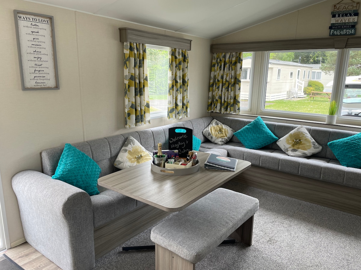 At the home you'll find 3 comfy bedrooms, 1 double with storage beneath and 2 twin bedrooms, there is also a small sofa bed in the lounge. There's 4 person dining inside and outside on the deck. Tea, coffee, cutlery, pots, pans and all cutlery provided with a good size filter coffee machine. The lounge has 2 sofas, electric fireplace, Smart TV loaded with Netflix, Disney+, Amazon Prime and More for when those tired feet need a rest!...
