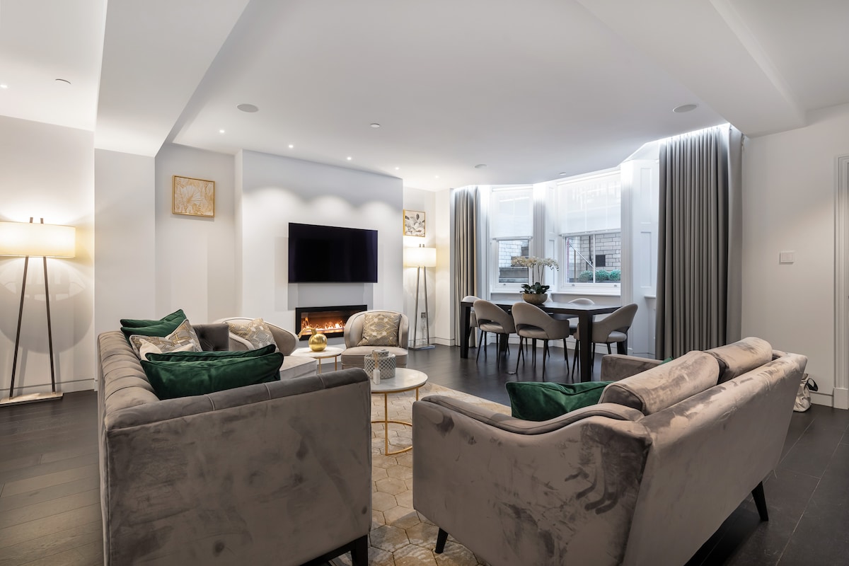 📍 Just 1 minute from the Hampstead tube, steps from top restaurants, Hampstead Heath, and Central London just few mins away. One of the finest flats with AC in Hampstead, this luxurious 2-bedroom / 2 bathroom home comfortably sleeps up to 6 guests. Featuring king-size beds, private entrance, chic design, stylish bathrooms, underfloor heating, and air conditioning in every room. Luxury kitchen with Bosch appliances. This elegant new built blends luxury and comfort with top-tier amenities. 🏡