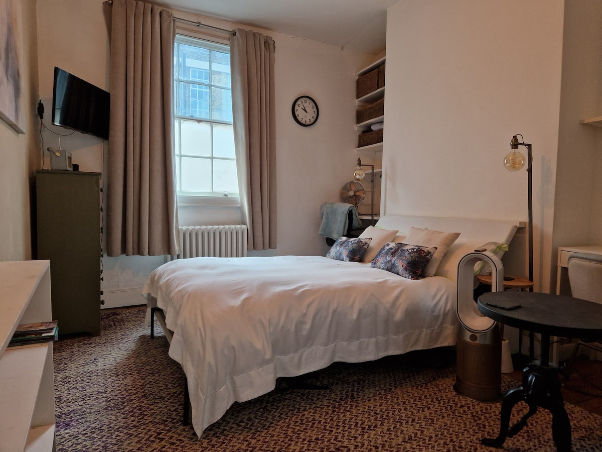 Small but perfect! A beautifully renovated studio apartment in the heart of Brockley. A one minute walk to the train and overground station. Coffee shops, restaurants and a pub on your doorstep. A king sized bed and black out blinds to give you a great night's sleep. From Brockley station it is 9 minutes to London Bridge, 20 minutes to Shoreditch, 30 minutes to Oxford Street and 40 minutes to Gatwick.