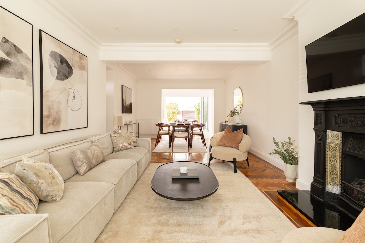 A refined three-level Hampstead maisonette spanning 130.99 sq m, designed for comfort and style. Features a bright reception room, separate modern kitchen, and a private terrace off the master suite with super king bed and en suite. Two additional king bedrooms, a family bathroom, and elegant interiors throughout. Moments from Hampstead Heath, cafés, and shops, with excellent transport links nearby.
