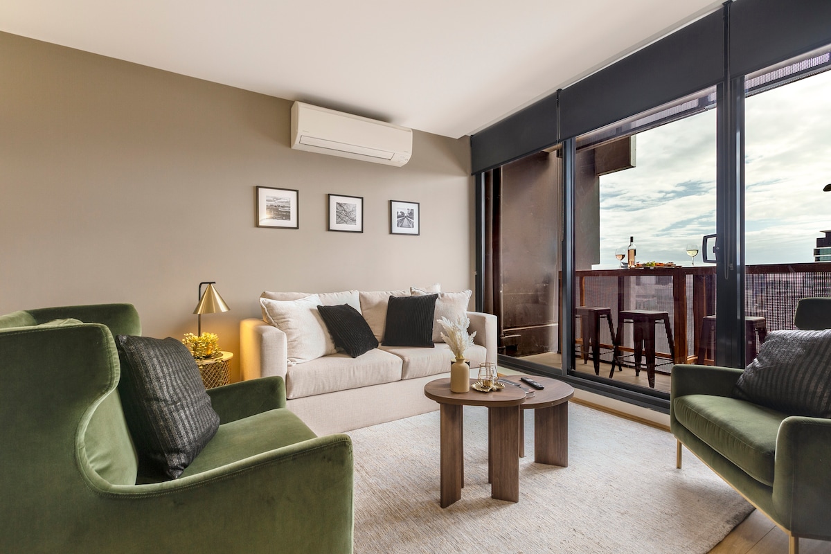 A tranquil space to call home while you're in Melbourne, your own 2 bedroom 2 bathroom apartment (64sqm Internal + 6sqm Balcony). Designed with sanctuary in mind simple modern and minimalistic. Enjoy the amazing views of the city skyline. This is a family friendly space. Located next to Southern cross station and the sky bus terminal. Situated in the free tram zone - everything Melbourne has to offer is at your finger tips - close to cheap eats, classy restaurants and hip cafe's.