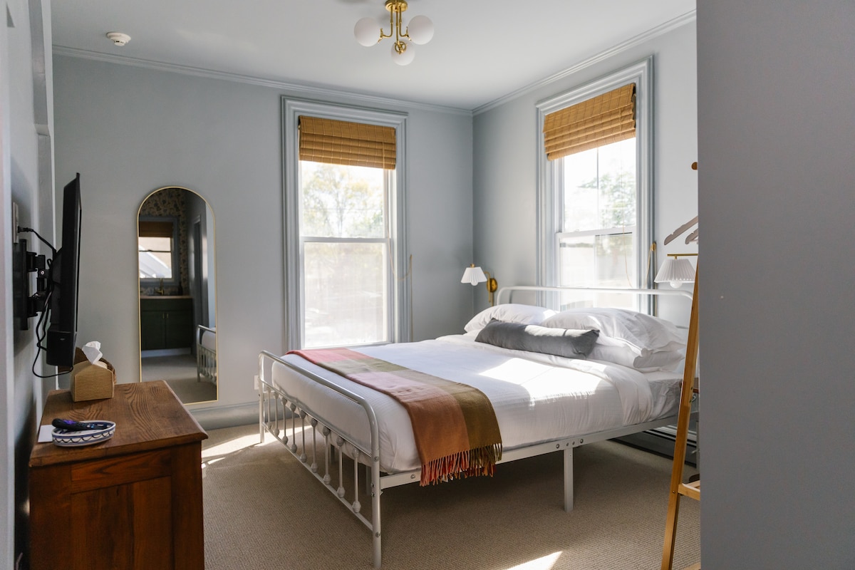 Welcome to The Bracy Suite, a cozy private room perched on the third floor of the historic Ipswich Inn. This room is newly furnished with a comfortable queen bed and a cozy cottage theme to make you feel right at home. Your room includes an ensuite bath with local boutique amenities and Smart TV with Youtube TV (150+ channels!). Smartlock ensures an easy self-check in process. Enjoy easy walkability to downtown Ipswich shops, restaurants, and cafes and a short drive to beautiful Crane's Beach!