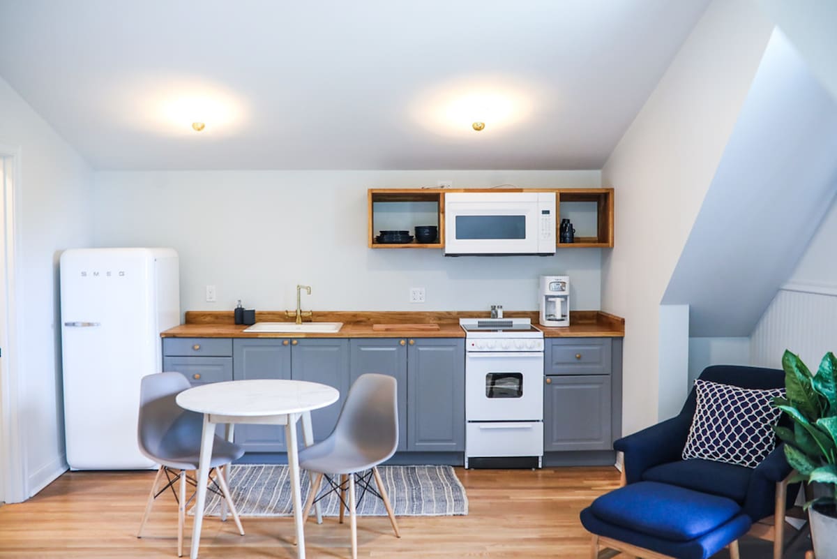 Welcome to The Wilcomb Suite, a newly renovated room with en-suite bathroom on the 3rd floor of the historic Ipswich Inn. Unwind on the King sized Brooklyn Bedding bed and enjoy morning coffee from the keurig at the wet bar. Your space includes local boutique bath amenities and a Smart TV with Youtube TV (150+ channels!). Smartlock ensures an easy self-check in process. Enjoy easy walkability to downtown Ipswich shops, restaurants, and cafes and a short drive to beautiful Crane's Beach!