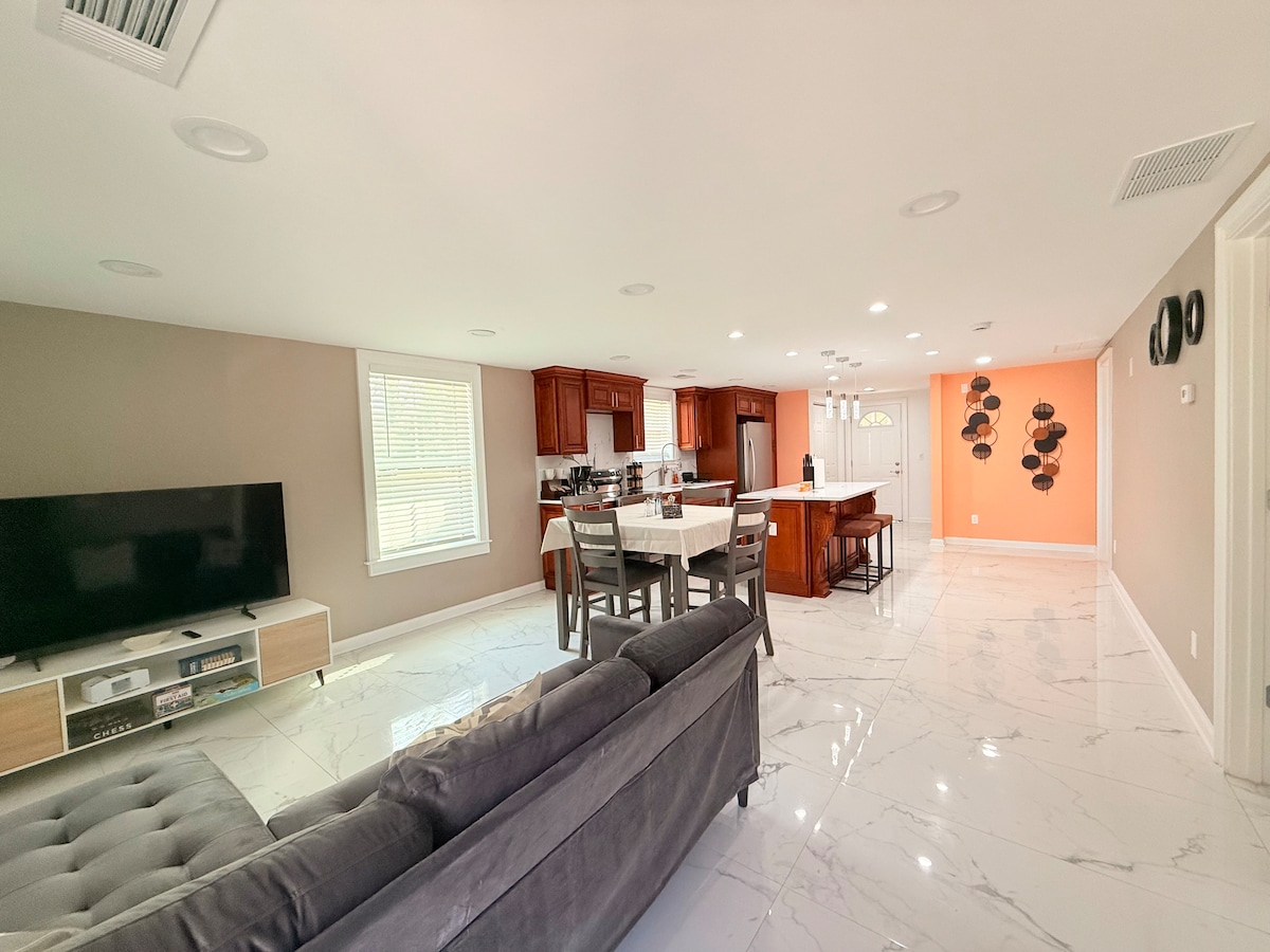 NEW August 2024 REMODEL UPDATES!!! Welcome to our spacious 3-bed, 2.5-bath home with a sunroom bar and air hockey/pool table. Only 5 mins from the interstate, this cozy retreat offers convenience and fun. Relax in the stylish living areas, enjoy meals in the fully equipped kitchen, and unwind in the air-conditioned sun room bar. Challenge friends to air hockey or bask in the tranquil backyard. Explore local attractions easily from this prime location. Book now for a memorable stay!