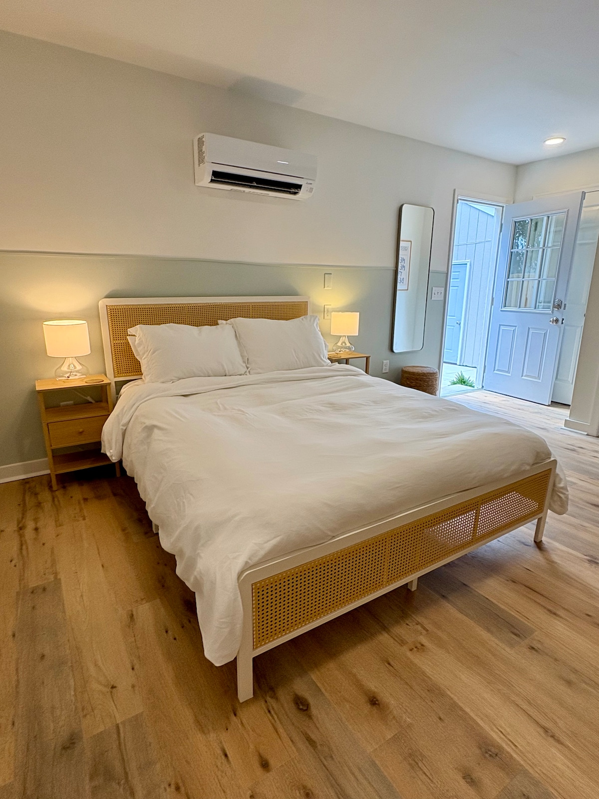 Guest Suite and bathroom with private entrance on side of the house. King Tempur-pedic mattress. New Couch with Queen pullout bed. There are no shared spaces other than the driveway. There is a small refrigerator with a freezer, microwave, air fryer, toaster, sink, and Keurig in the small kitchen area. Pet and service animals are welcome.
