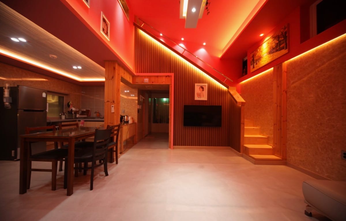 바쁜 일상에서 나와 평화로운 여유를 느낄 수 있는 환경을 갖추고 있습니다. 가족 혹은 친구들과 함께 정자에서 분수를 보며 바베큐를 즐겨보세요! 또한 밤에는 불을 끄면 모든 별자리가 보일 정도로 아름다운 장관을 보실 수 있을 것입니다. 모두 함께 즐길 수 있는 노래방 기계 또한 마련되어있습니다! 500평 이상의 넓은 공간을 주위 신경을 안 쓰고 자유롭게 사용하실 수 있는 환경이 조성되어 있습니다! 별이 내리는 집에서 일상의 스트레스를 풀고 오세요!! - 6인 이상시 인당 2만원 추가요금 발생하십니다.( 유아는 추가요금 받지않습니다~) -애견동반시 추가비용 발생하십니다. (여기어때 에서도 찾아보실수 있습니다! )