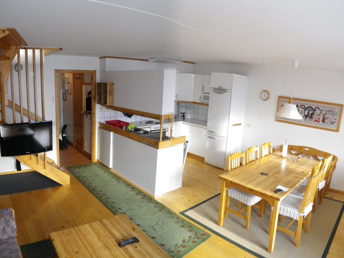Mitt i FUNÄSDALEN med utsikt över sjön, fjällen och ängar runt omkring. Fräsch lägenhet på 2:a vån med egen ingång och stor balkong i väster med sol hela dagen. Arbetsplats med höj- och sänkbart skrivbord och inkopplat fiber. Lakan och handdukar ingår. Sängen är bäddad när ni kommer. Handdukar och disktrasor i lin från Växbolin för miljön! Nära till bycentrum och Funäsdalsberget. Bastu, diskmaskin, tvättmaskin samt parkering med motorvärmare och laddbox. TV finns med Cromecast.