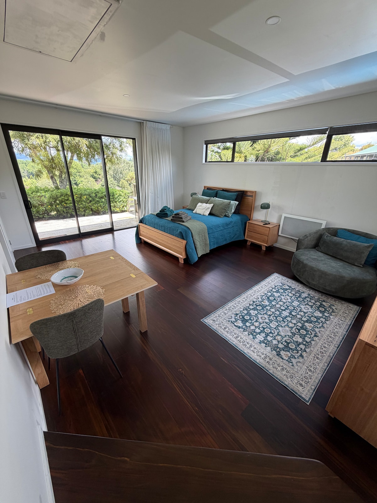 Centrally located, with elevated views. Your space is completely detached, with full privacy, carpark, lockbox entry. Making for the perfect spot for an intimate boutique feel get away. Tastefully designed modern lockwood/rustic chic complemented with rich textures in mind. Coffee & tea selection is provided within your room for your stay. Thoughtfully equipped appliances - kettle, toaster & microwave for your convenience. However no full kitchen cooking facilities.