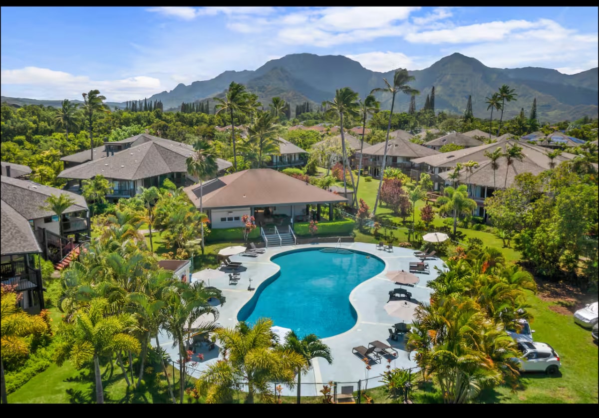 Escape to paradise in this newly remodeled studio on Kauai’s lush North Shore! ✅ 8 min to Hanalei ✅ Fully equipped kitchen ✅ Pool, hot tub & BBQ access ✅ Beach chairs, towels & snorkel gear Central to everything on North Shore: 🛒 3 min to groceries 🏖️ 5 min to Hideaways Beach 🌺 15 min to Anini & Kilauea Lighthouse 🏞️ 25 min to Tunnels & Haena Park ✈️ 45 min to Lihue Airport Perfect for couples or solo travelers looking to unwind, explore, and soak up Kauai's magic.