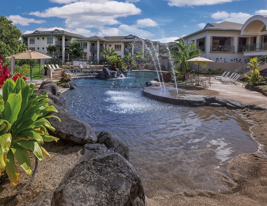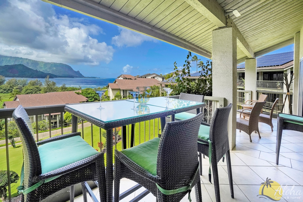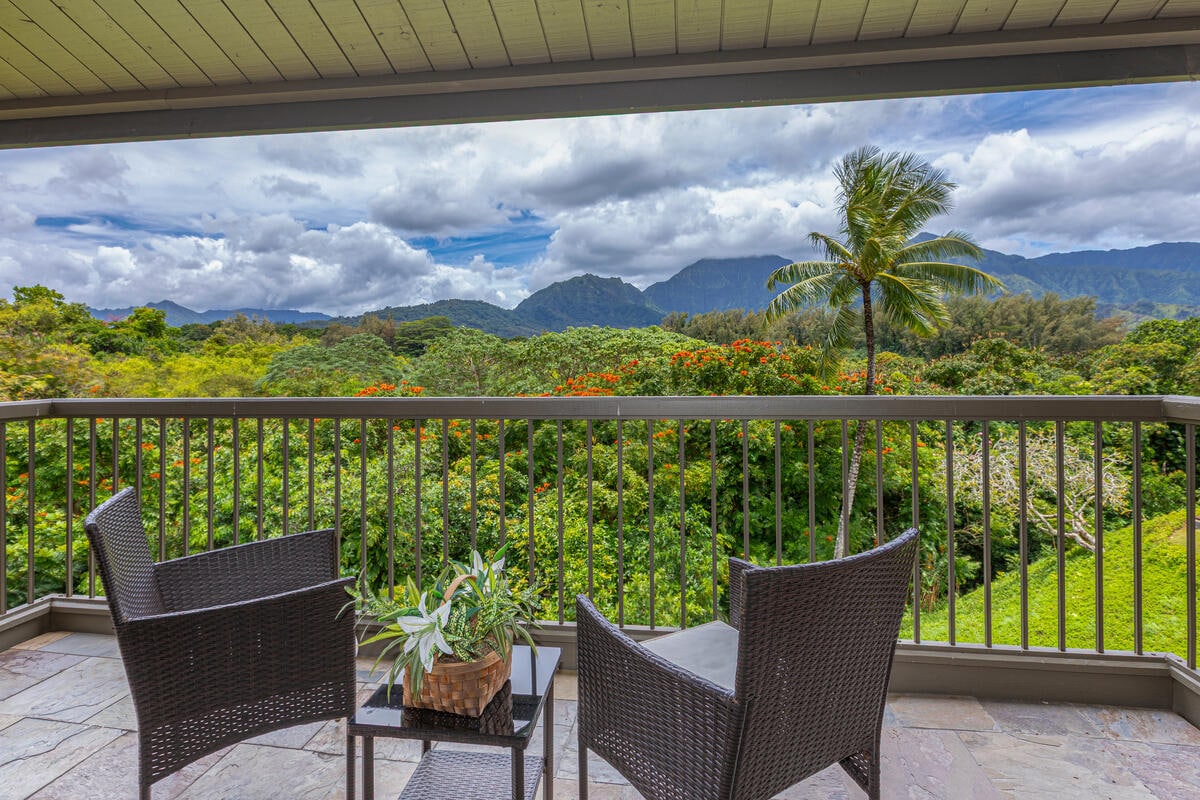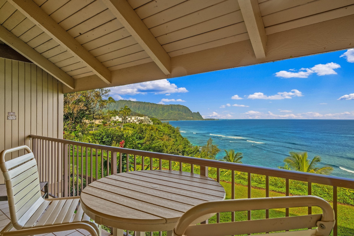 Come visit our 2 bedroom condo that is just steps away from the pool, jacuzzi, and bbqs' that is budget friendly, yet remodeled in November of 2022! Located in the pristine Princeville neighborhood that is manicured daily and centers around a beautiful golf course. Our condo is arguably in the best location in the complex with gorgeous mountain and pool views and large grassy play area, which is great for the parents who want to keep an eye on their kids from the patio/lanai.