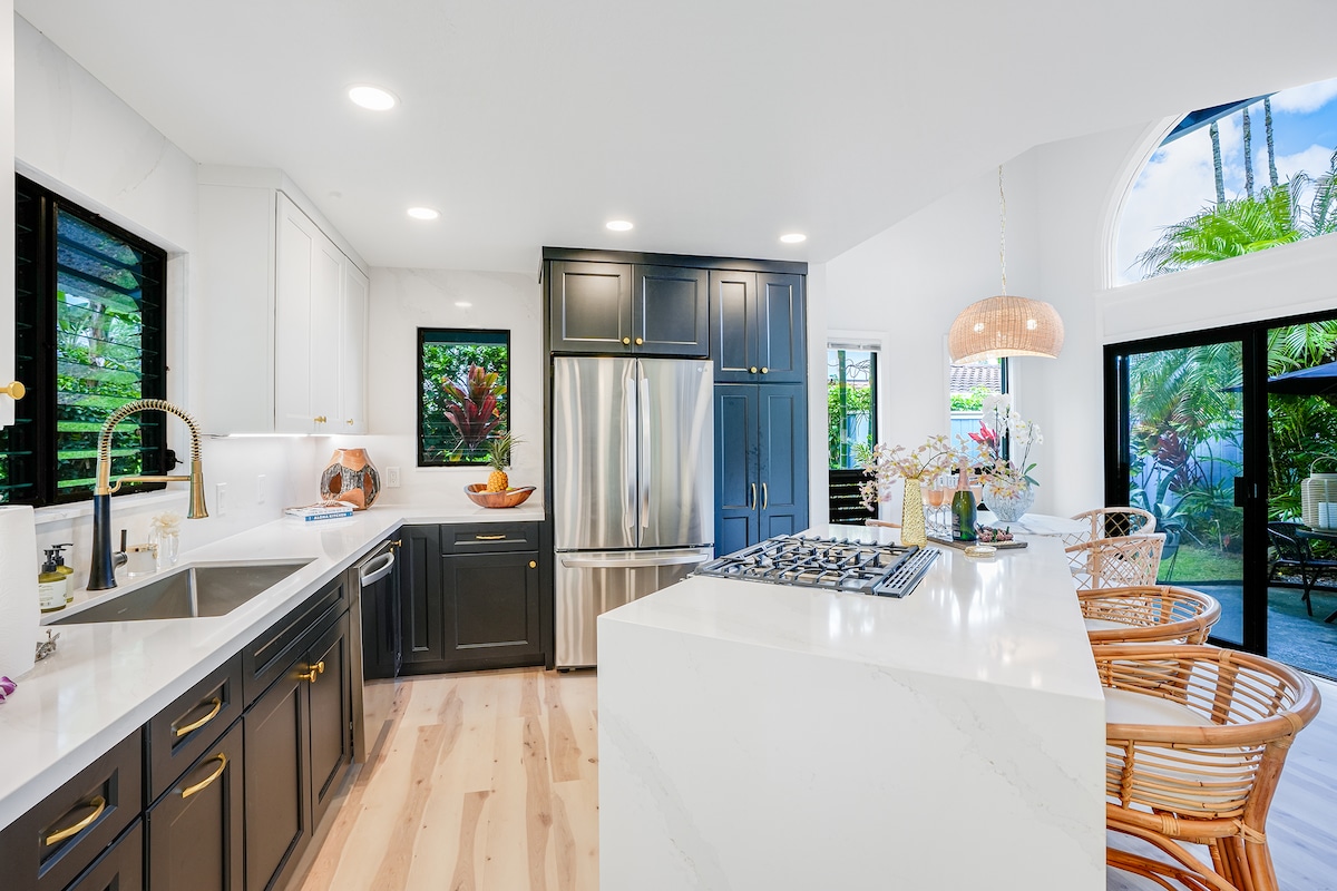 Your beautiful base camp to adventure awaits! Newly-renovated, fully-appointed guest suite above the garage of our family home. Private lanai, peekaboo oceanview, bikes, kayak, SUP and surfboard included with your rental. Bright, breezy unit with gorgeous vaulted ceilings, fresh white linens, a pillow top mattress and coffee to jumpstart your morning. We have everything you need to explore this magical island - recently featured in Condé Nast as one of Hawaii’s top Airbnbs!