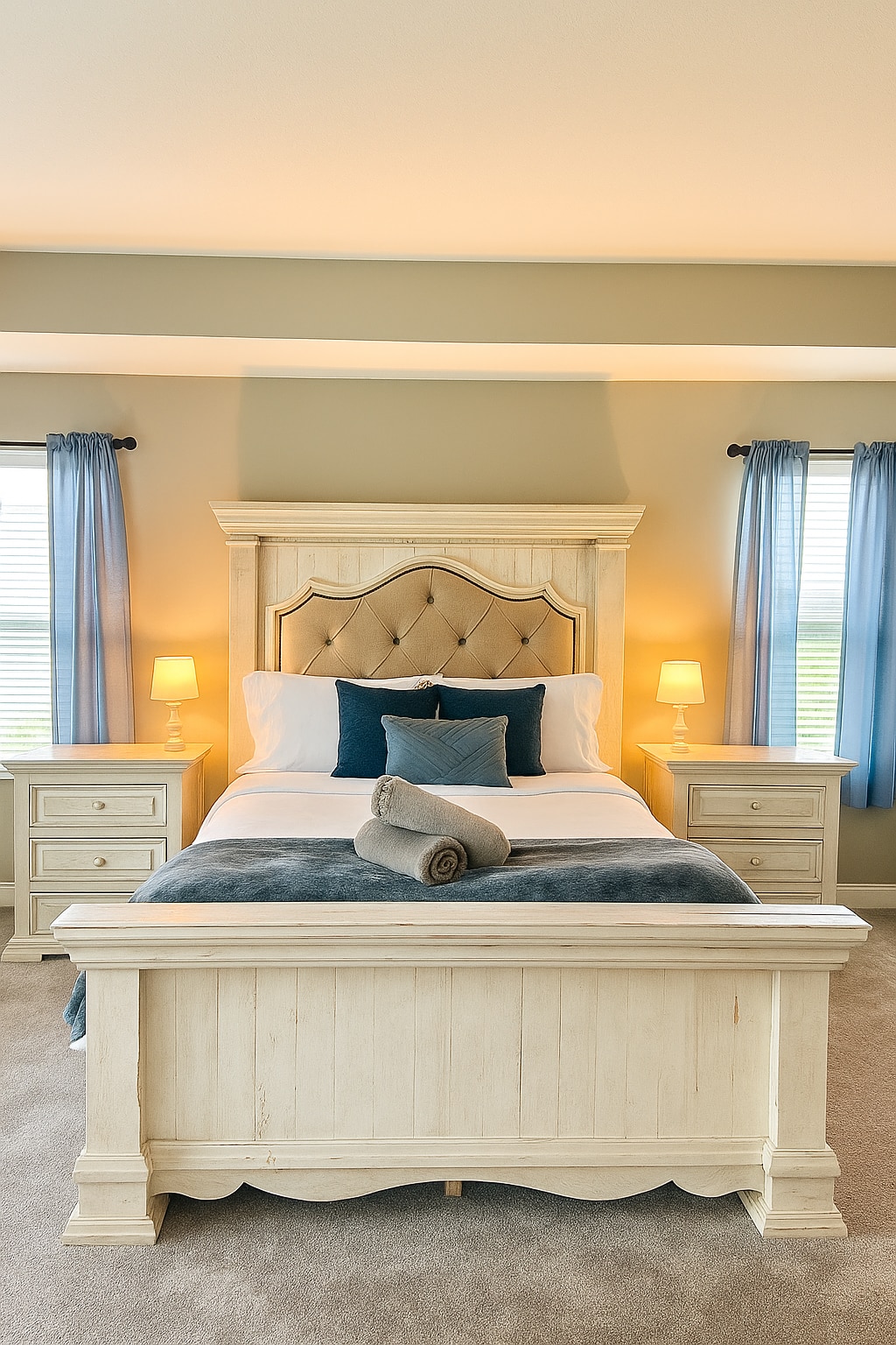 (17ftX16ft) Suite: Welcome to our Pastel-Couture Suite, where high fashion meets ultimate comfort. This chic space, adorned with elegant artwork, sets a sophisticated tone. Sink into a cloud-like bed, promising a blissful night's sleep with luxurious linens and plush pillows. The elegant bathroom offers two spacious closets and plenty of drawer space. Dual sink with a glorious mirror.