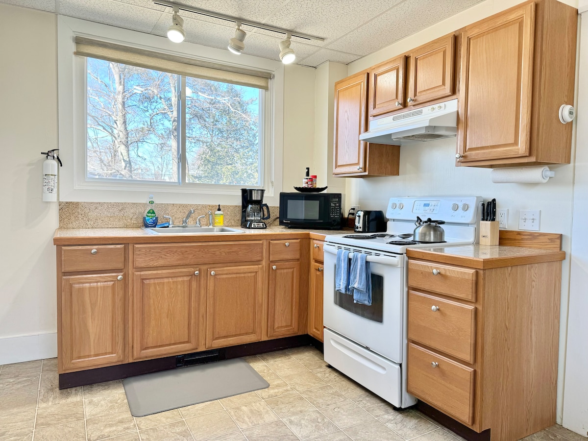 We have an open, airy studio apartment with a queen bed, twin bed, and twin trundle under the twin, private bathroom and full kitchen, located approximately 25 miles, or about a 40 minute drive, from Acadia National Park. Pets are welcome as we have a small fenced in area in the backyard. Bring home a lobster and cook it in the fully furnished kitchen.