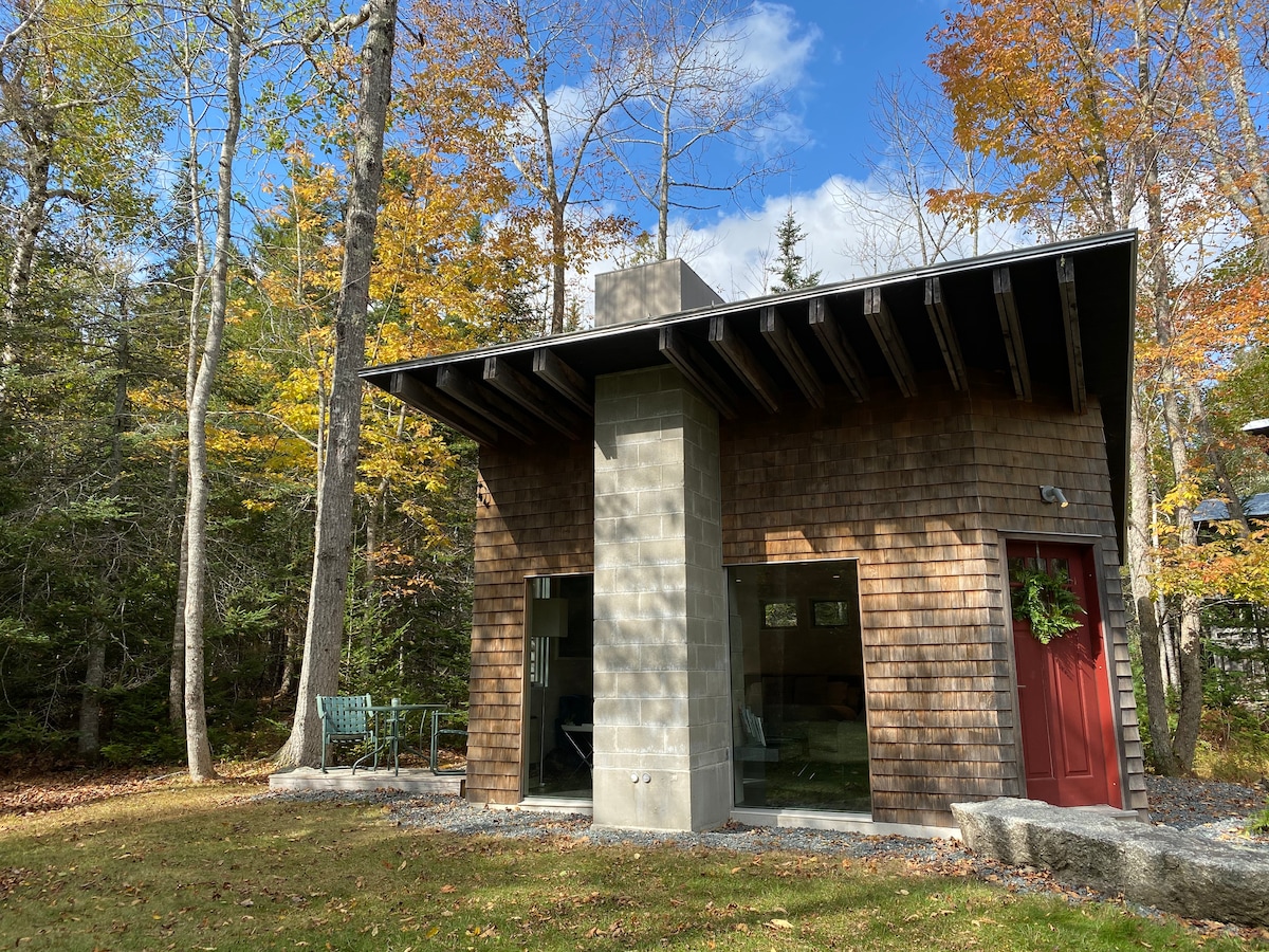 Relax, recharge, & escape here. A unique & peaceful guest house in the woods of Lamoine, Maine with large windows looking out to the woods. Close enough to Bar Harbor / Acadia National Park (45 minutes) but removed from the hustle & bustle. A 10-minute walk down a gravel road to a beach in Lamoine with distant views of Acadia National Park. Enjoy all weather with our new wood stove fireplace surrounded by large windows. We have a comprehensive guidebook for our guests upon check-in.