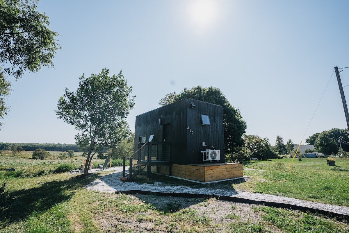 Cozy Tiny Home with Stunning Views Escape the hustle and bustle in this charming tiny home with serene field views. Enjoy the tranquility of nature while still being conveniently located just minutes from Bangor's airport and town center. Relax and unwind in the private Jacuzzi with stunning views of the endless field or gather around the fire pit for a cozy evening under the stars. The projector screen offers endless entertainment options, perfect for movie nights or gaming.