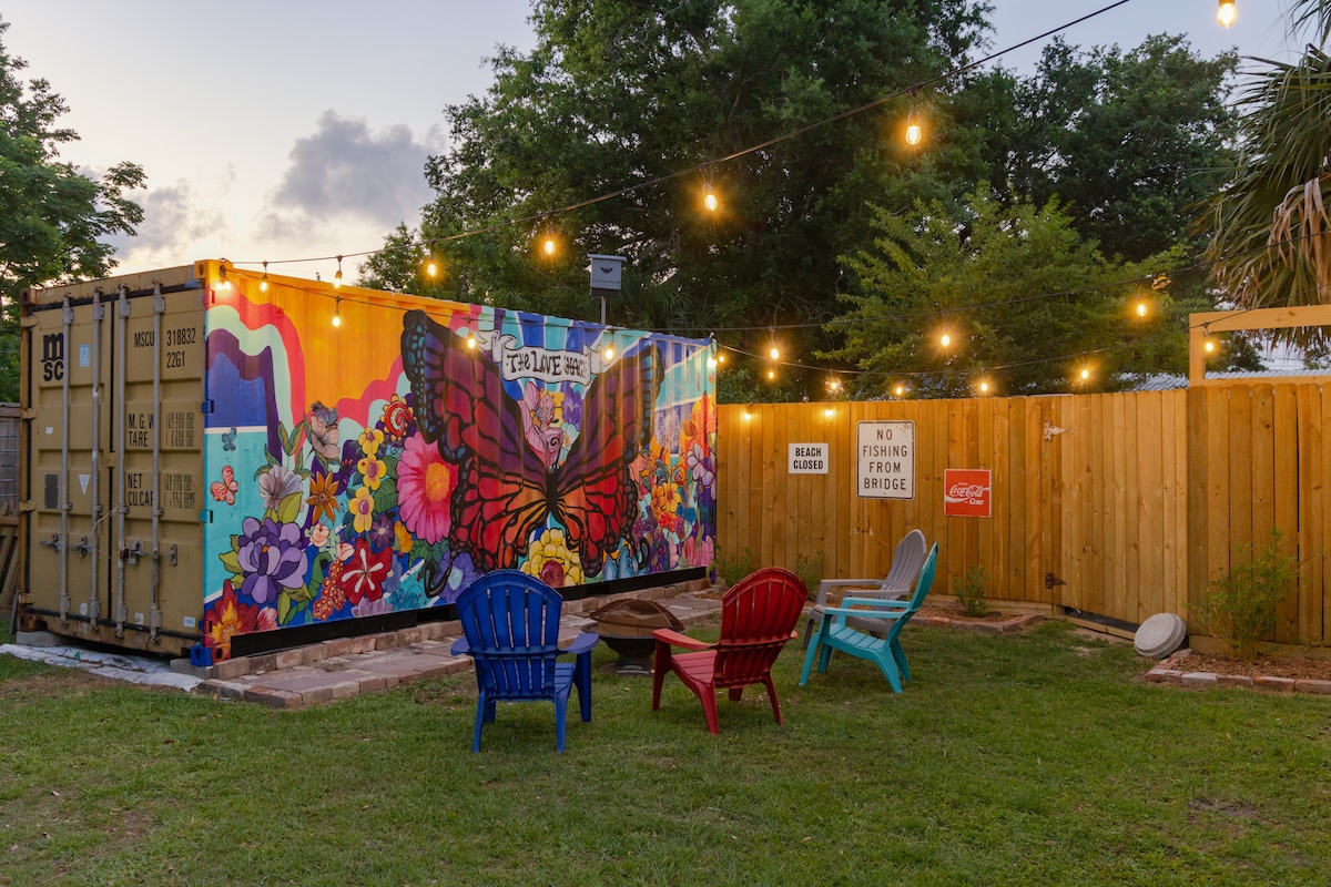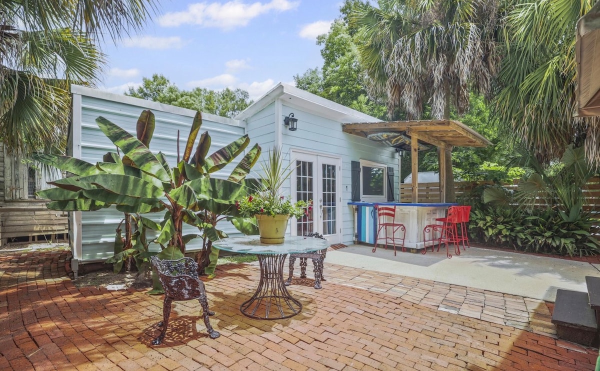 In Old Town near beach, shops, restaurants. Off street parking. If you don’t like trains and church bells this is not for you. Owner has dog and cat. Vintage, modern, and antique cypress architectural elements. Everything is new. Wonderful art mural for photo opp. Private porch. No smoking anywhere on property. No pets. Two night minimum.