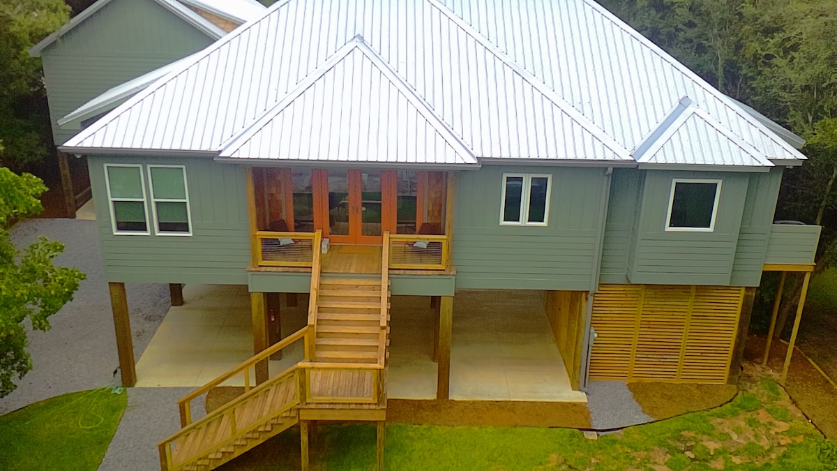 Raised house on a beautiful street in Waveland. Huge private lot with a great outdoor deck in the back for birdwatching, coffee or just watching the sunrise or stargazing at night. Lots of space for the kids to explore and the area underneath the house is a great place to sit and relax and enjoy the breeze or sit in the hot tub and watch TV. There is also a propane fire pit with comfortable seating Inquire about longer term rentals and earlier or later checkin and checkout.