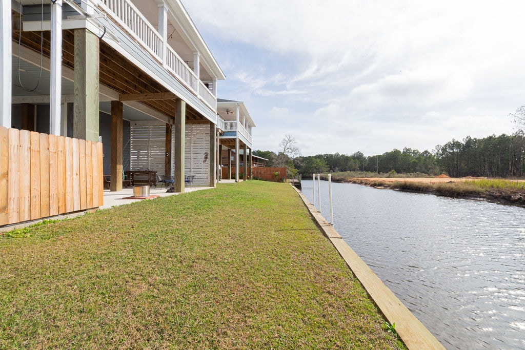 Relax with the whole family at this peaceful place to stay. Enjoy the waterfront property. Free Wi-Fi We have fishing poles, Kayak, Life jackets, crab Traps, Kids beach toys, Bicycles, corn hole boards, games for the family to play. You also have catfish food to feed the fish, BBQ grill, TV at bar area downstairs to enjoy. Public boat launch 2 miles down the road there is a deck to dock your boat on the property. 5 miles from the beach.