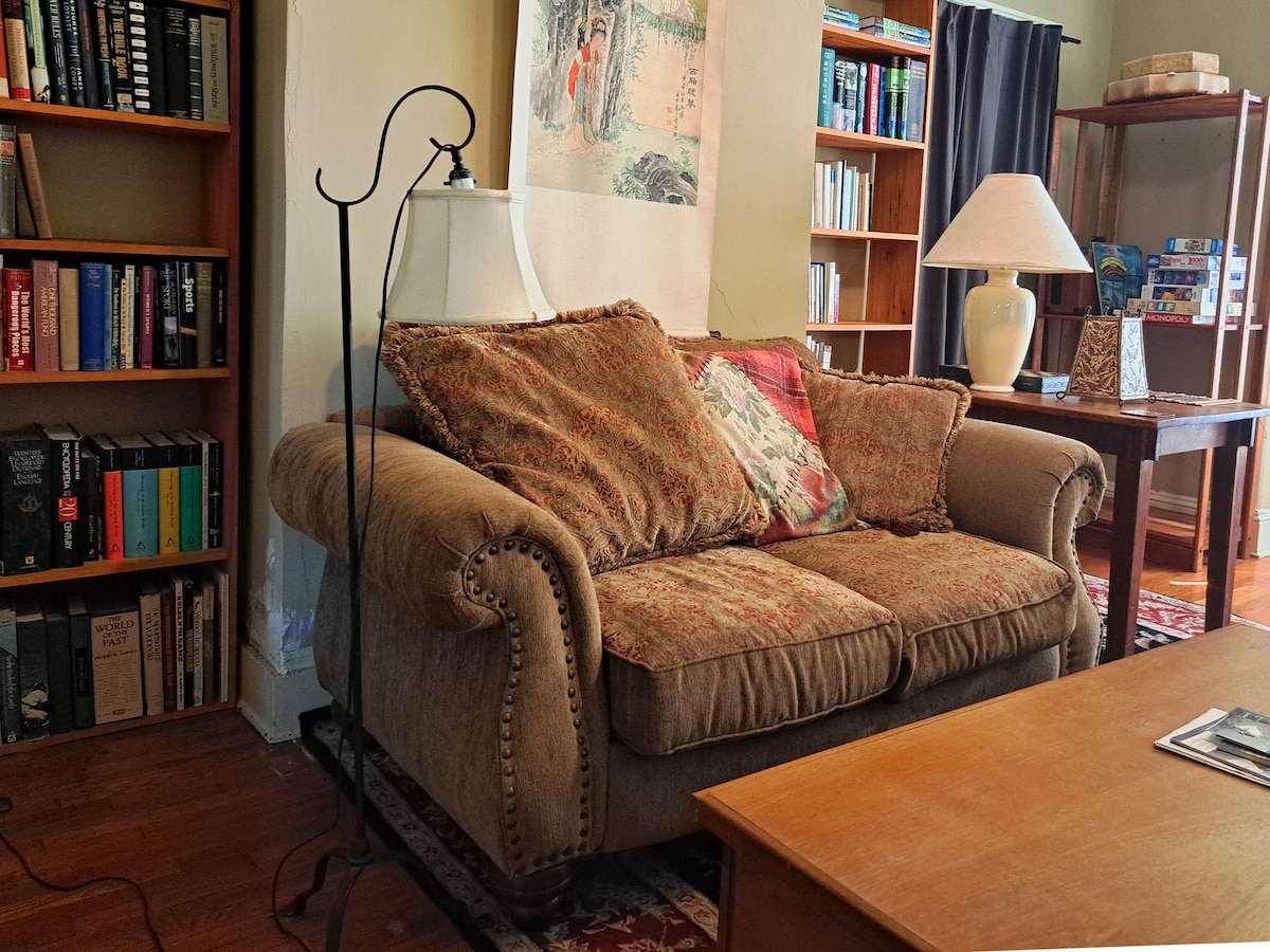 A 620 sq ft. fully private suite with your own entrance in a beautiful early American eyebrow colonial. The mid-century farmhouse style is highlighted by a darling kitchenette. And don't forget the bathroom hot steam shower! Please note the kitchenette has an induction stove top and convection air fryer toaster oven. It's a great for light cooking. Please ask for a grill for cooking meat and greasy food. We are a zoned a b&b with bike rentals. See barn & bike, llc for more info.