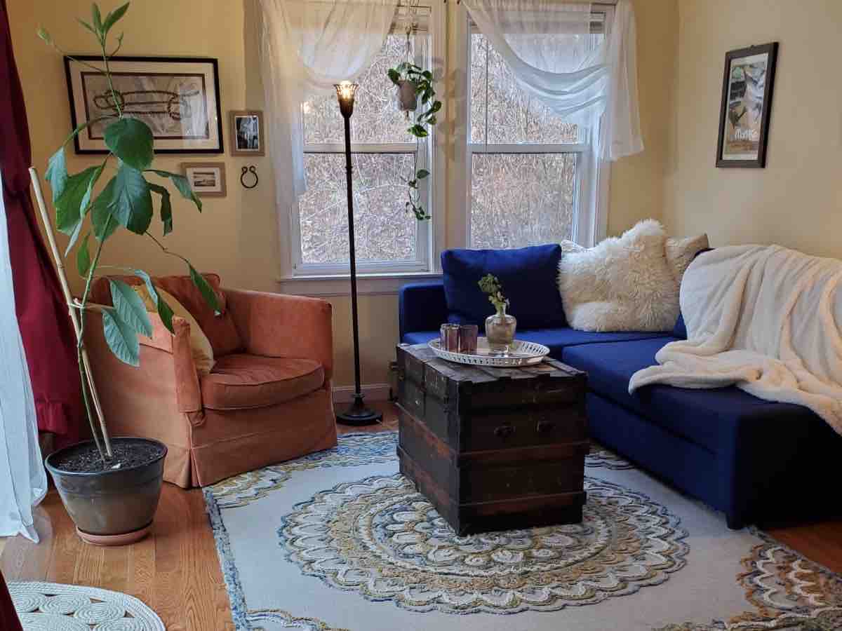 A cute cozy cottage sleeps 4 comfortably. One queensize bed and 1 pull out couch.. Dog friendly for up to 2 dogs at $100 per dog. My cottage sits on 13 privately owned acres. Partially fenced in 3 miles down the road from Jiminy Peak ski resort & summer activities and a short drive to Ramblewild adventure park. Hiking, boating, museums, shopping, restaurants- all sorts of activities in the Berkshires. Two minute ride to Bloom Meadows!