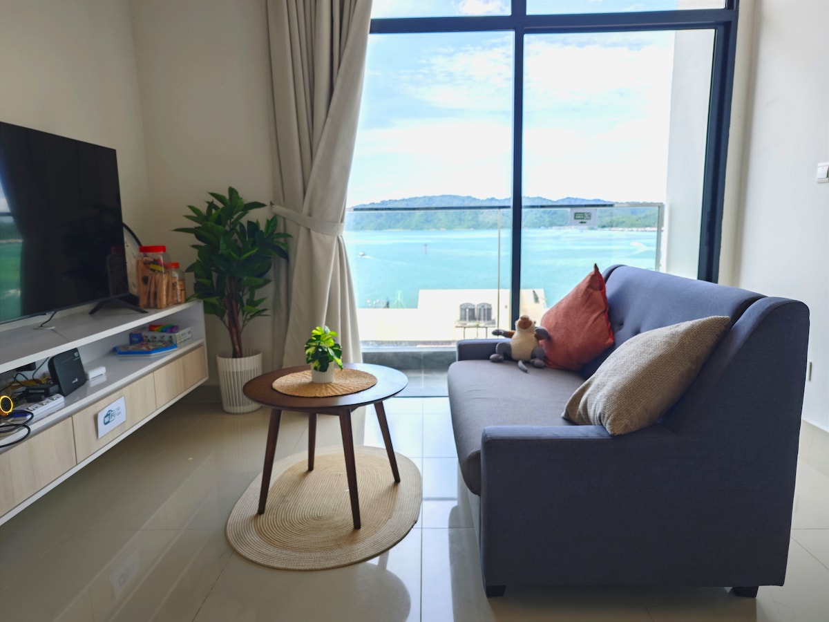 New condo located at CBD and by the sea bay. Enjoy sea view surrounded with islands at our high floor unit. Walking distance to Jetty with convenience for island hopping; International convention centre, (Duty Free) Jesselton mall and Suria Sabah mall is nearby. Our Homesuite is clean with frequent sanitizing and air purifier provided. Family friendly and also suitable for couples and business trips.