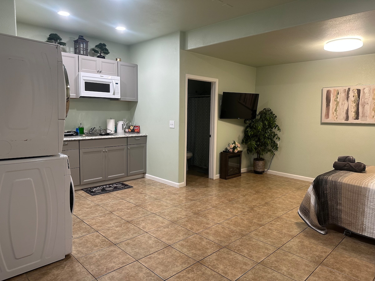 You are looking at a studio located in the quiet neighborhood of Paseo Del Lago in Tulare, CA. The studio can fit 1 to 2 guests comes with a bathroom, a mini kitchenette, and private entrance. WiFi and parking is included and the Del Lago Community Park is nearby. Location is also next to the Tulare Outlet, which includes your favorite stores to go shopping! Right off the 99 freeway, 5 miles away from the World Ag Expo, 40 miles away from Sequoia, and 10 miles away from Kaweah Health Clinic.