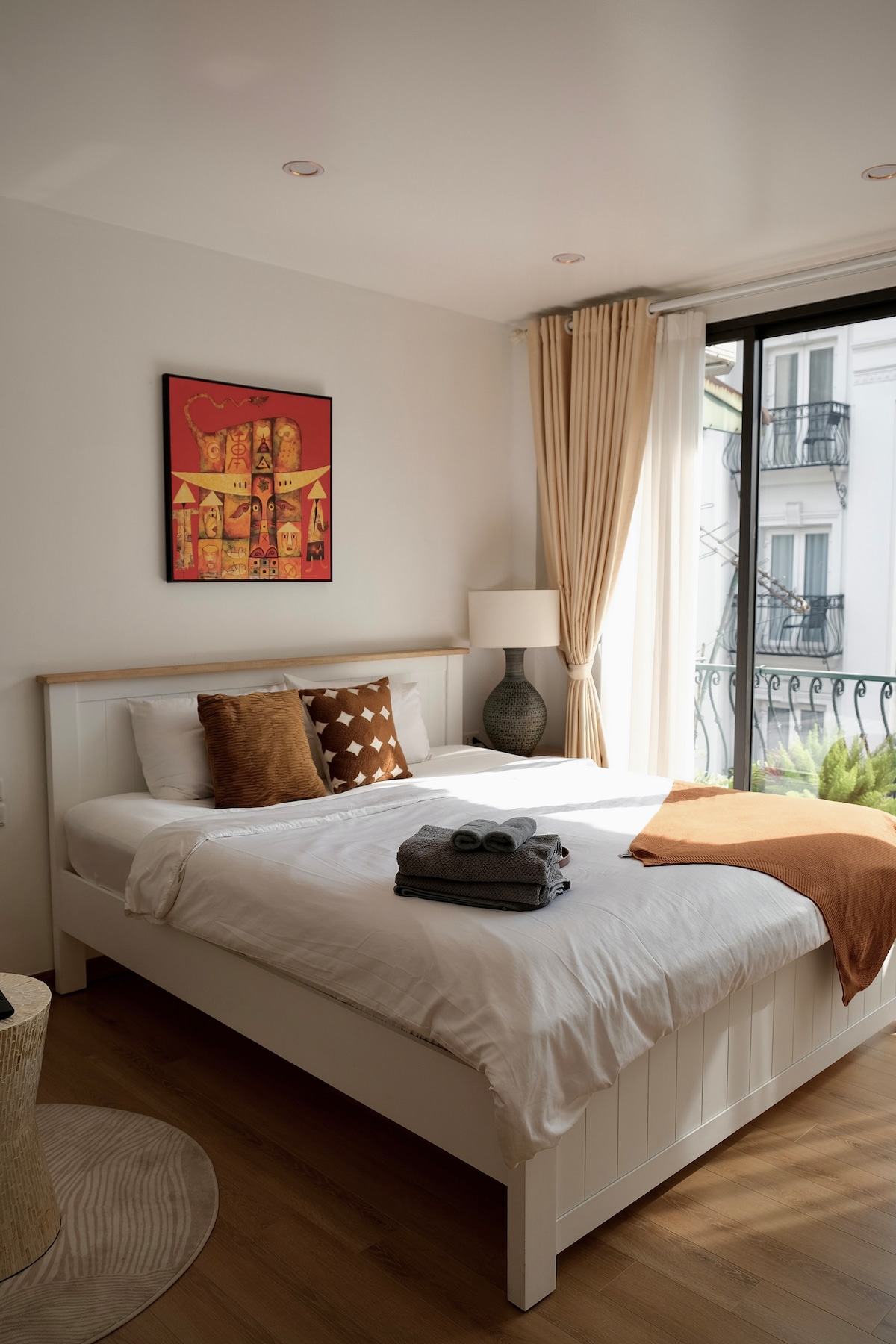 Wake up above Hanoi’s Old Quarter in a peaceful studio with a spacious sunlit balcony perfect for slow mornings, a cup of local coffee, and watching the city’s rhythm unfold below. Just steps from Hoan Kiem Lake, Ta Hien beer street, and Dong Xuan Market. Located on Gia Ngu Street with easy taxi access and a self-service laundry downstairs. A stay that feels quietly different simple, warm, and truly Hanoi.
