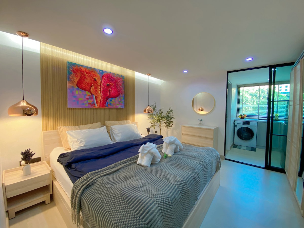 全新装修公寓,房间非常大,舒适干净,超大玻璃窗通风采光很好,一楼入口有公寓管理员,入门刷卡,非常安全。 房间内家电家具齐全,电视、洗衣机、冰箱、微波炉、电磁炉、热水壶、餐具🍽️,衣柜衣架,电熨斗,吹风机等齐全。床垫舒适,床上用品全部纯棉布料,保障睡眠品质。 房间内使用光纤网络,网速500M,非常适合数字游民工作和游戏。 位置位于宁曼路11巷,位置极好,楼下有7-11,超市,中餐,泰餐,日料,韩国料理等网红餐厅,世界各式咖啡,拉花冠军等很多网红咖啡店,马杀鸡按摩店、洗衣店等。距离宁曼一号280米,玛雅商城450米,清迈大学1.9公里,就在宁曼路的巷子里,各种精品小店、服装店随你逛,适合打卡拍照,住的非常舒服和便利! 一楼提供免费停车库,汽车🚘摩托车🏍️都可以停,出行便利。