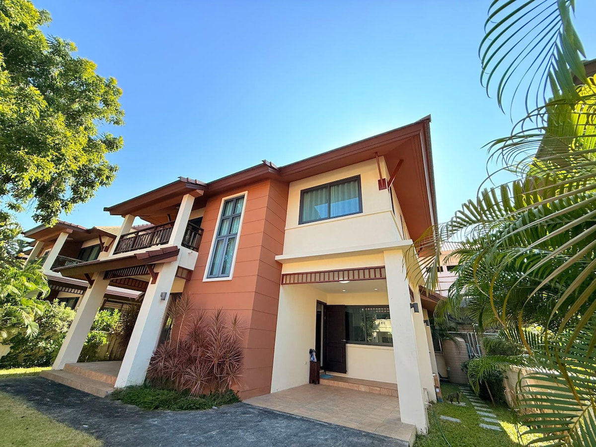 住在YengHwa Home,真正沉浸在翠綠和悠闲中,不是旅行,而是一種生活,感受清邁的四季和魅力。 全空調花園別墅,空間寬敞,設備齊全,位在安全寧靜的角落,輕鬆自在,讓您的珍貴的假期,更添美好回憶。 長住優惠,提供免費的機車。 房源有三個房間和2間客廳,高速網路,2套乾溼分離的衛浴。餐廳和廚房都有面向花園的大窗,隨時感受自然。 前後院空間大有雨棚,讓您活動不受氣候影響,清涼乾爽。 社區門口就是7-11,非常便利。配有防盗門窗和24H警衛,安全無慮。社區內有兒童遊戲區,7-11的巷內有收費游泳池和大型別墅社區可自由進出,適合散步騎自行車。 社區位主要道路上,可直通清邁古城,在不到5公里的路上有5間大型購物中心,非常便利。 到Big C super center,車程只要3分鐘,有很多連鎖餐廳,麵包店,衣服店,傢俱店,美食廣場,電話公司,銀行,建材,家電,手工具……應有盡有。 距清邁古城,週末夜巿只需15分鐘車程。 建議下載Grab app,出租車會到家門口接您,購買外送食物或生活用品,非常方便又便宜。 附近有夜間動物園,皇家花園,清邁大學農場,更有許多各國特色美食餐廳。