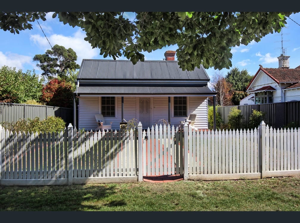 Situated one block from Town Square, Rothesay Cottage consists of the front rooms of an original 1870s home, moved from Newbury by steam tractor in 1928. The overall style is a hybrid of 1870s and 1920s Art Deco to reflect its history. Your queen room boasts a stunning period bedroom suite complete with ensuite. Your snug (cosy lounge) includes the original operational Edwardian fireplace with a modern cupboard kitchenette. The front verandah has been enclosed to create a sunroom with daybed.