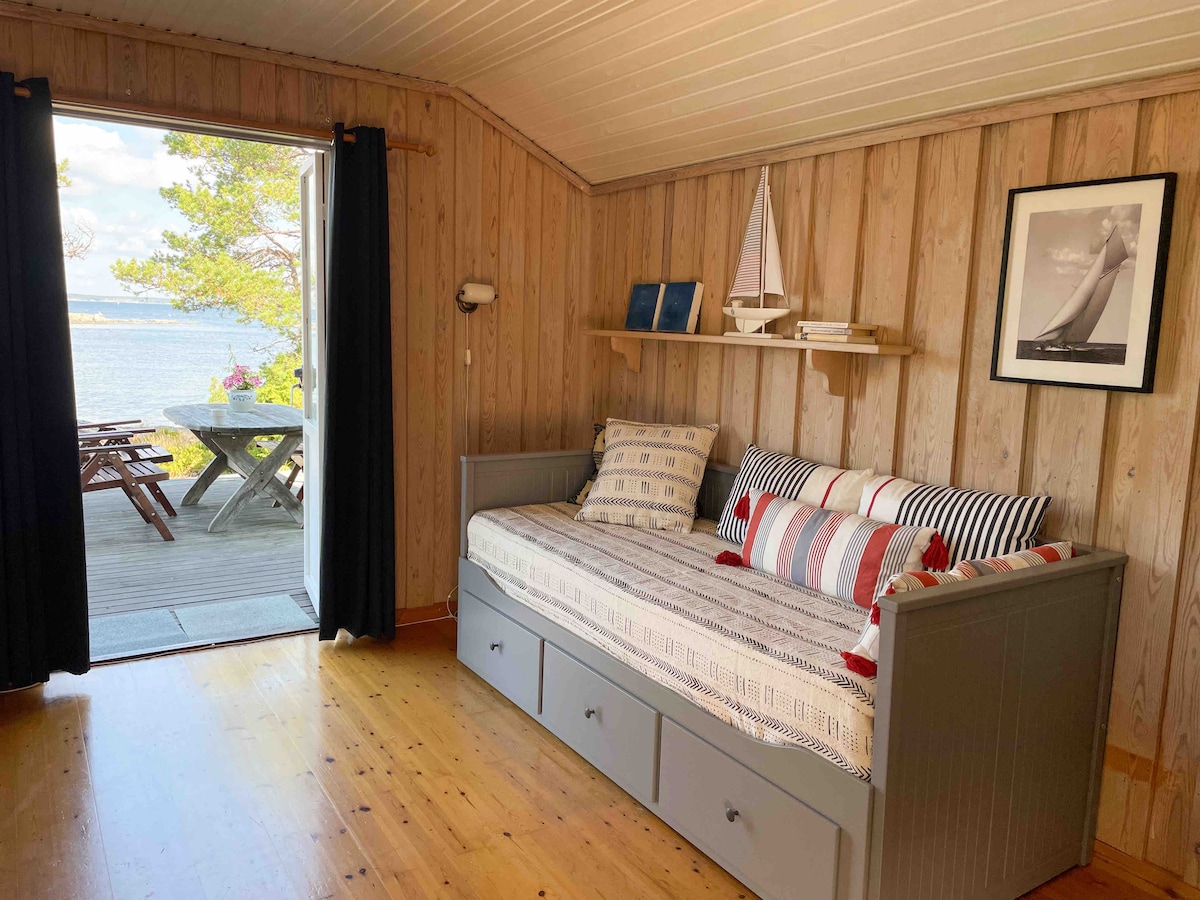 A wonderful simple house, 40 sqm, facing south directly by the sea. The private simple natural beach is very suitable for children. A small kitchen with necessary facilities as dishwasher, stove, fridge, freezer and microwave. Bathroom with WC, shower. Outside do you also have access to a bbq grill and a rowing boat. There is no door to the sleeping areas, but they are separated. You can get here easily by car or by the public bus. Sheets / towels (250SEK/p) and cleaning (900SEK) can be rented.
