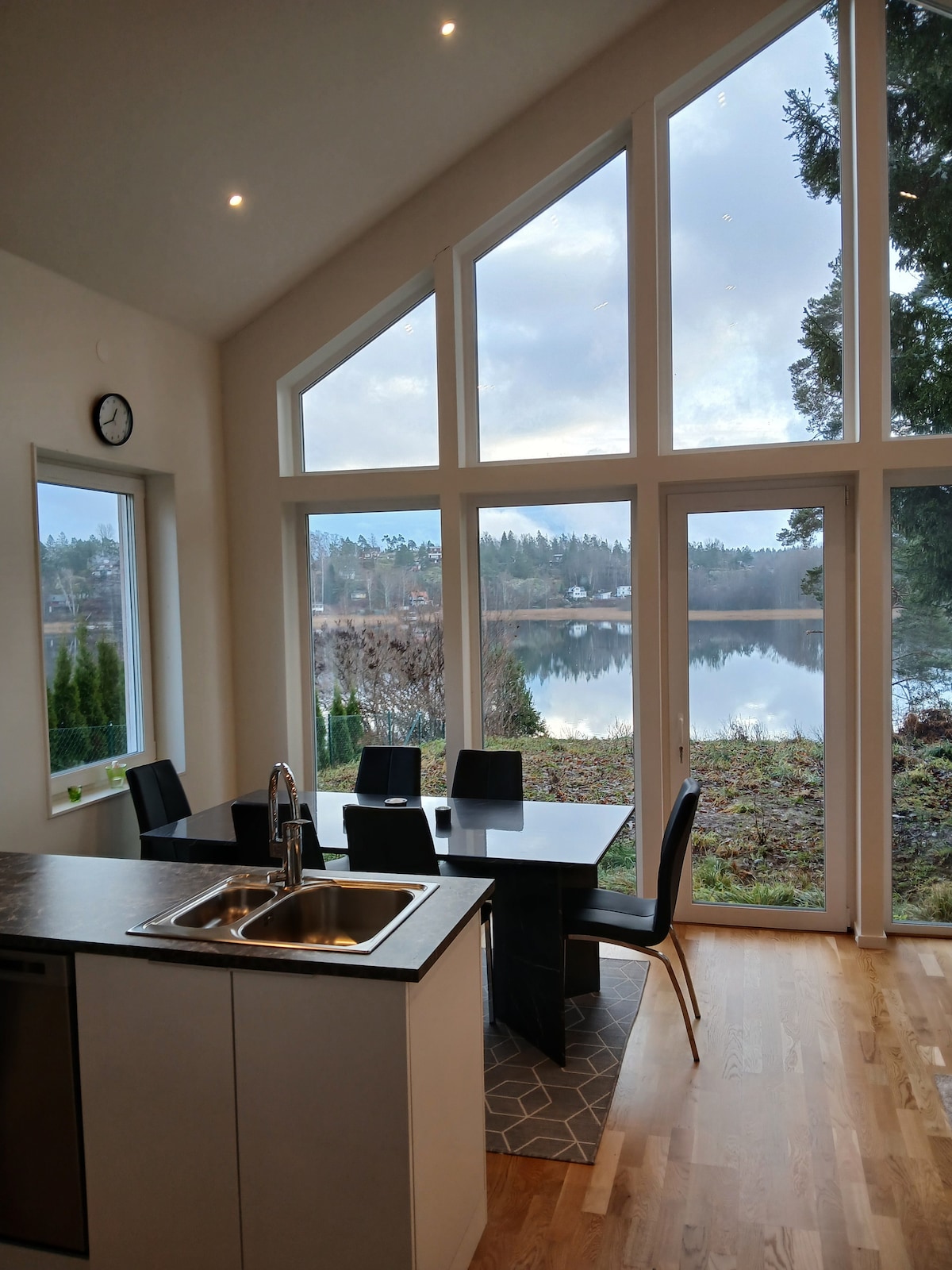 Next to the sea, there is a newly built charming house designed by an architect, with own access to a new sauna house! The house is located on Smådalarö in the Stockholm archipelago! The house has a southwest location. This means that you will have direct sunlight for most of the day and evening in the summer. Enjoy the sea view while you eat breakfast, lunch or dinner. Just a few steps away from taking a dip in the sea! The house also has a fireplace with large windows facing the water!