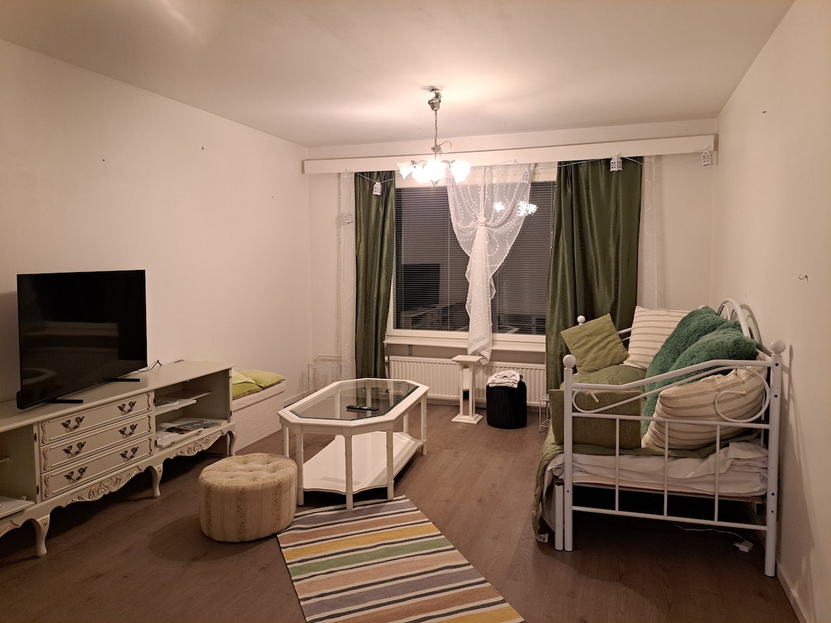 Tervetuloa viihtyisään, vastikään remontoituun pikkukämppään, joka sijaitsee erillisessä rakennuksessa kotimme pihalla. Majoituksessa on oma sisäänkäynti, kylpyhuone, keittiö ja oma terassi. Pihan uima-allas on yhteiskäytössä talon asukkaiden kanssa kesäisin. Makuuhuoneessa on parisänky ja olohuoneessa kaksi vuodesohvaa. Alue on rauhallinen ja turvallinen, ja pysäköinti onnistuu aivan majoituksen edessä. Asumme viereisessä talossa ja autamme mielellämme, jos tarvitsette apua.