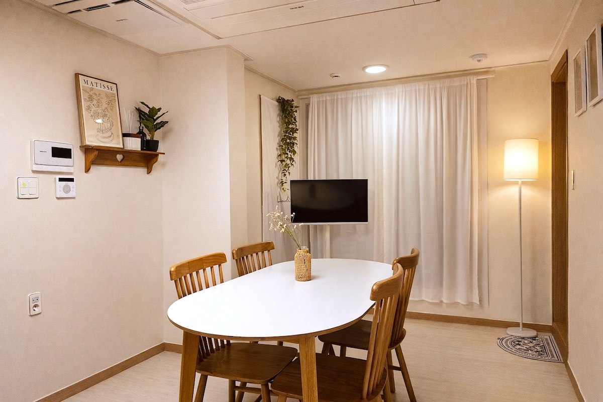 🌸 Stay Pause Step away from the noise and find true rest. Like a photo capturing your best moment, may this stay become a memory you’ll treasure. ✔️ Guest Favorite 5-star rated for cleanliness, comfort & style. Ideal for couples, solo stays, and family visits. 🍀 Cozy & Nature-Inspired Stylish loft with Hinoki wood for slow living. Photos by 4 artists add visual charm. 🚆 Easy City Access Cheongnyangni 20 min, Itaewon 30 min, Myeongdong 40 min 🏞️ Attraction Relax at Uireung, a UNESCO Site