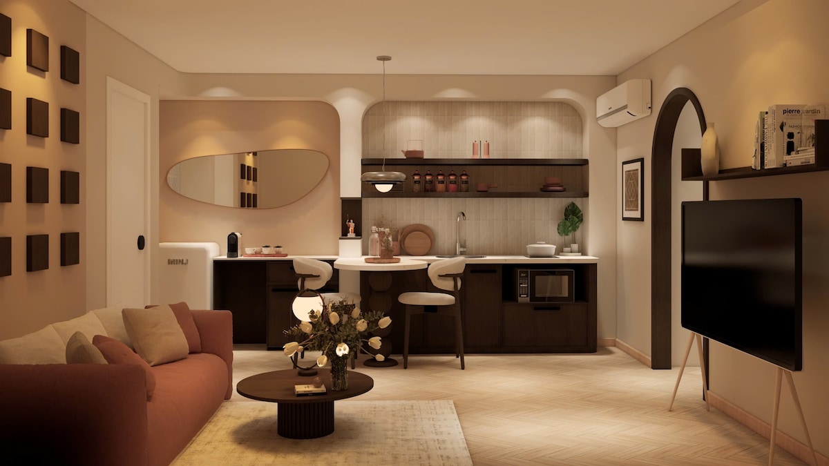 Tucked away in Hanoi’s French Quarter, this 82m² apartment offers an elegant blend of greenery and minimalist design. Inspired by Japanese aesthetics, the space flows gently from room to room, filled with natural light, soft textures, and calming tones. A spacious balcony with lush plants invites slow mornings and peaceful evenings. Every detail is intentional — a quiet retreat in the city.