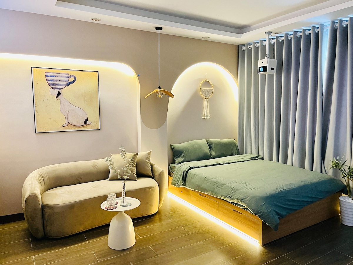 Newly built lake view building which is suitable for short to longterm rent, having a fully function shared laundry plus kitchen and garden co-working space facing a beautiful lake. If you plan to have long travel/ business trip in Hanoi, this is a perfect place to stay with calm vibe of the room and a kitchen fully equipped for cooking, laundry space with washing machine and dryer, co-working space in a beautiful garden.