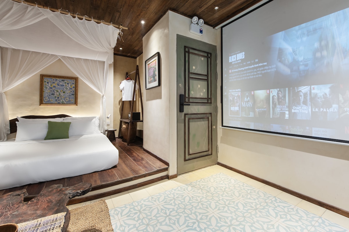 Discover Hanoi from this boutique condo in the Old Quarter—just a short walk to TRAIN STREET, HOAN KIEM LAKE, TEMPLE OF LITERATURE, and the THANG LONG IMPERIAL CITADEL. Thoughtfully designed for your comfort, it features a KING SIZE BED, PRIVATE KITCHEN, and a FULL HD PROJECTOR WITH 100 INCH SCREEN. Whether you're soaking in the WOODEN BATHTUB or taking in the city views, every detail invites relaxation. A perfect blend of central location and serene retreat.