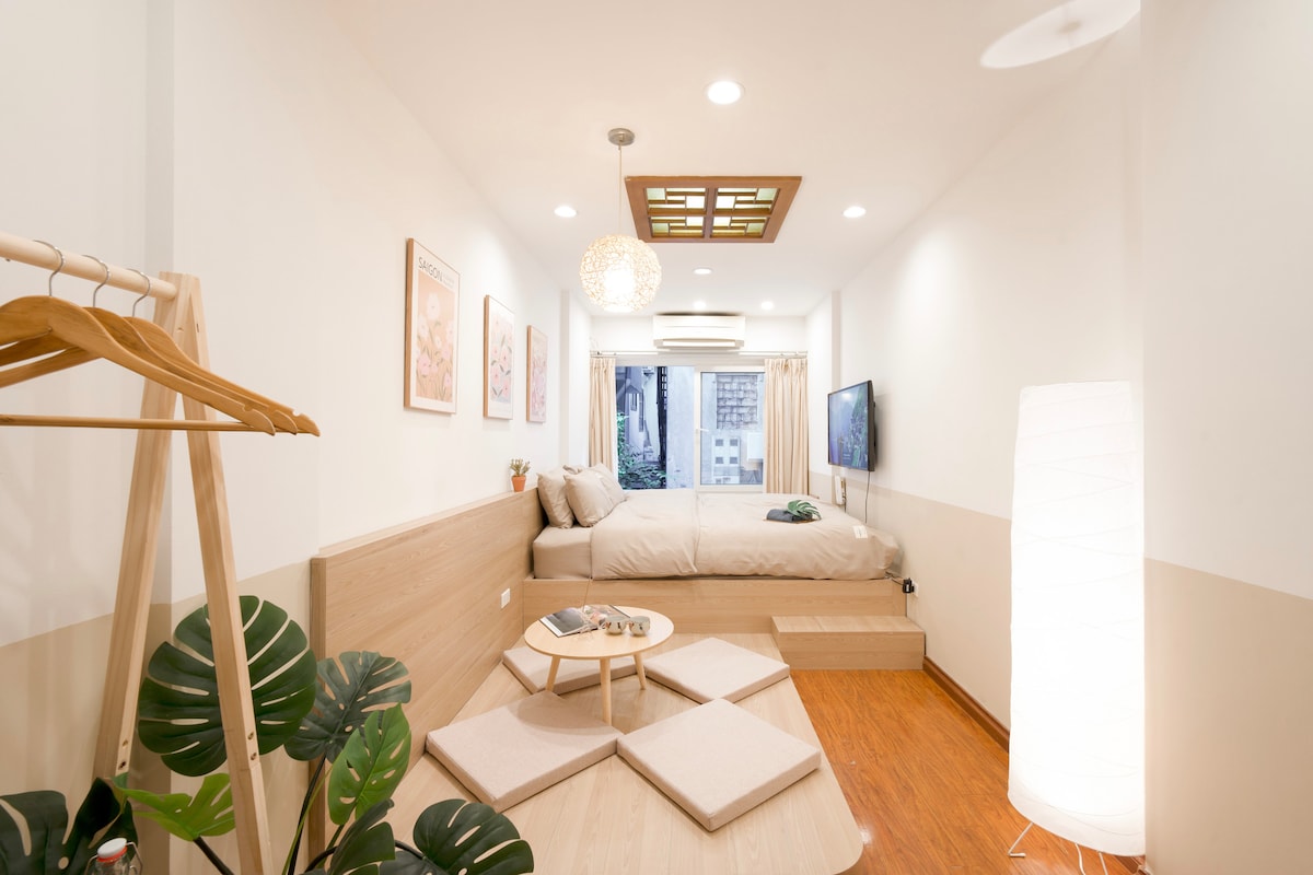 NO STAIRS! Nestled on the 1st floor of a charming French villa in center of Hanoi, the apartment gives you the convenience of reaching most tourist attractions in under 2km. It’s also in THE BEST STREET FOR SHOPPING LOCAL WOMEN CLOTHING BRAND also remains tranquil enough at night for you to rest after a day full of activities. Newly renovated and equipped with full amenities for a comfortable stay. *Smart TV with Netflix *Free Washer+Dryer +Breakfast (ramen+eggs) *24/7 SELF-CHECKIN.