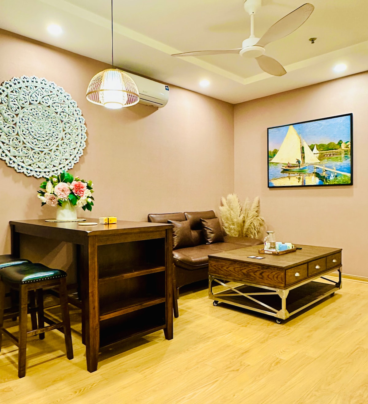 High-end apartment at Vinhomes Smart City with full amenities for couples, tourists or business travelers. Here you will rest and relax in a peaceful, luxurious space. Utilities include: 1. Indoor swimming pool 2. Outdoor swimming pool (seasonal) 3. Gym 4. Working Space 5. Shopping and entertainment at Vincom Mega Mall. 6. Check-in and take virtual photos at Japanese Garden 7. Stroll between the blue sea and white sand in the heart of Hanoi. 8. BBQ Party