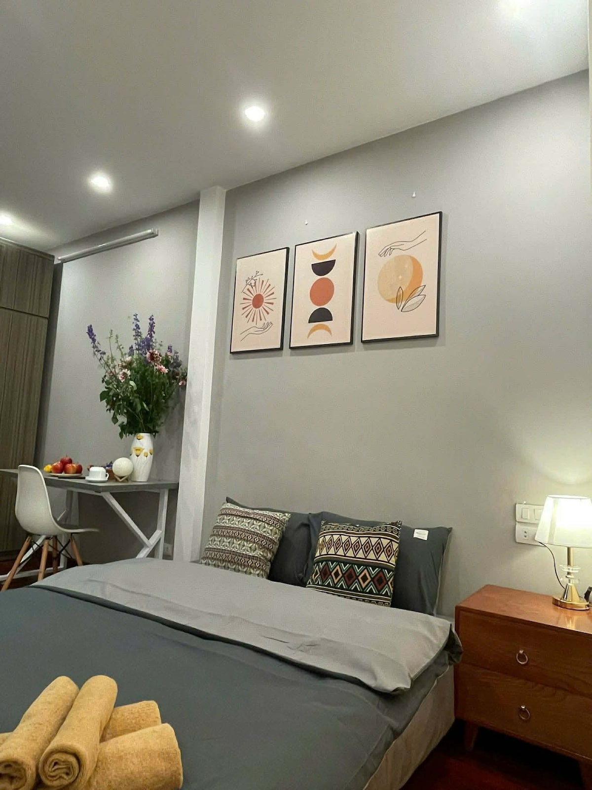 Apriltwelve Nest—a thoughtfully designed space where East meets West in the heart of Hanoi. Nestled in a peaceful alley of Hoan Kiem, surrounded by greenery and traditional living, this cozy room blends handpicked vintage details with modern touches. Just a 6-minute walk to Hoan Kiem’s main sights and only 4-minutes to the tourist bus station. A soulful stay for those who seek calm within the city’s vibrant rhythm.