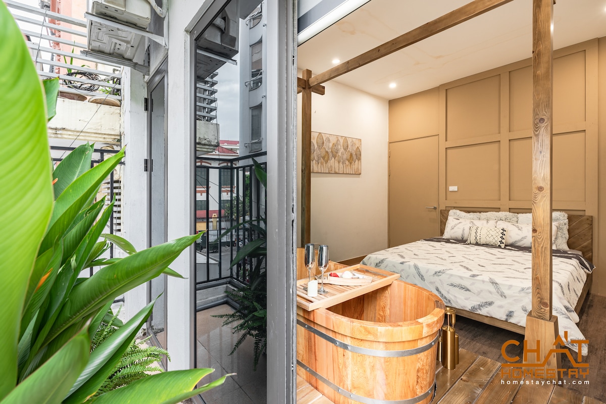Reinnovated 30yo house into a WABI-SABI Insta-worthy studio straight out of Pinterest📸 🚊SO CENTRAL!!! 2mins on foot to Food St, Train St, Imperial Citadel, etc. ✨5-star hotel-grade mattress, black out curtains, netflix, jacuzzi 🛀 🙋nice hosts who guide you thru every step of your stay-or stays invisible if you prefer-plus a local friend 4life 💻CAT6 cabling for business-grade Wi-Fi & steady LAN (💕 our diginomads) 🌿quiet neighborhood that makes you forget you’re right in the HEART of Hanoi