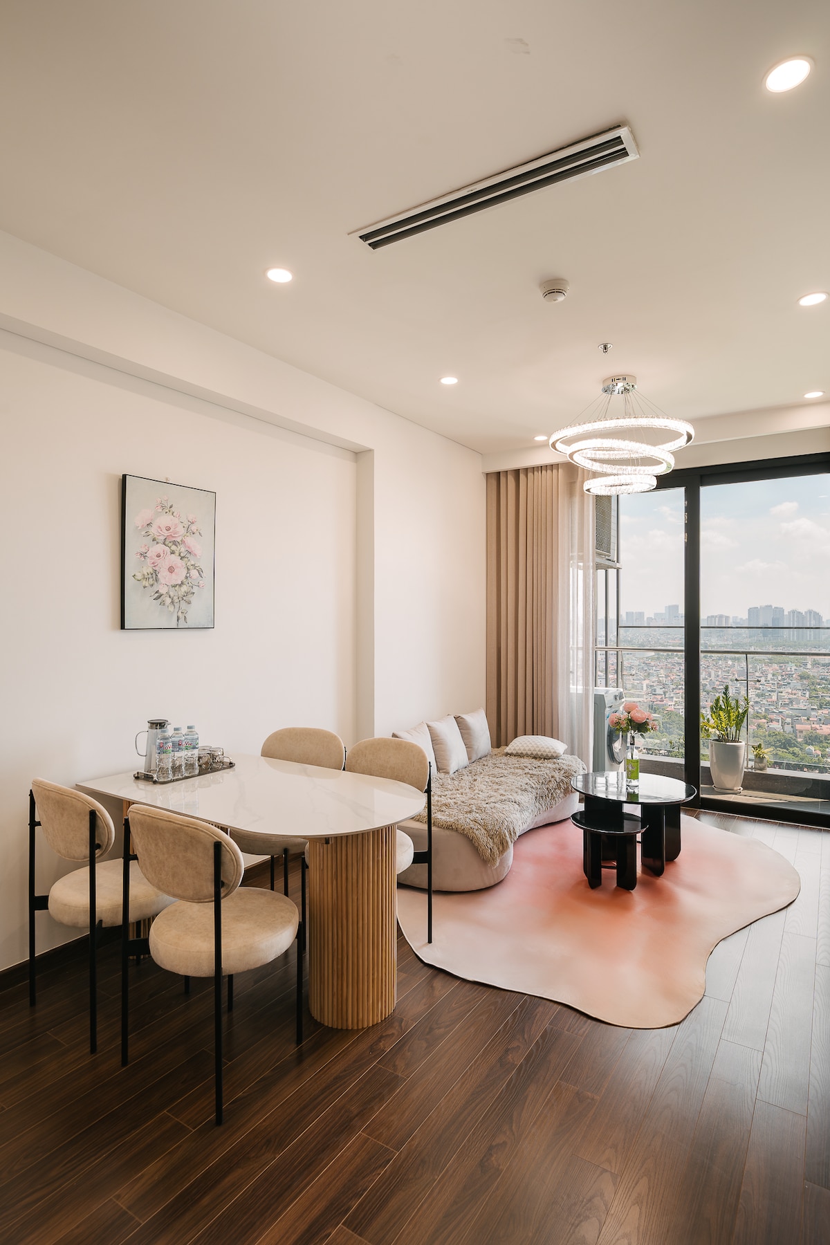 Experience 5-star inspired luxury in this stylish grey-toned studio, featuring a glass-walled bathroom, raw stone accents, and premium finishes. Perfectly located in the heart of Ecopark, just 3 minutes to Swan Lake and 30 minutes to Hanoi Old Quarter, with restaurants, cafés, and shops right at your doorstep. Equipped with Dyson fan, Bluetooth speaker and modern amenities; plus access to the gym and swimming pool on the 3rd floor — perfect for an elevated stay.