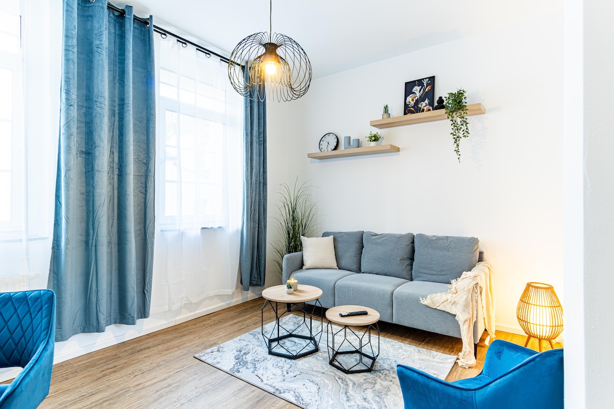 Die lichtdurchflutete Wohnung ist neu saniert, möbliert und befindet sich direkt in der Nordstadt neben der belebten Kopernikusstraße. Das Wohn- und Schlafzimmer mit bläulichen Meeresfarben verfügt neben zwei Einzelbetten (90x200), ein heimkinoreifes 58" großen 4k-Smart-TV mit Netflix + Amazon Prime Zugang, ein Kleiderschrank und ein Arbeitstisch mit Stuhl. Zudem gibt es eine Küche mit voller Ausstattung und ein Bad mit Dusche. Die Betten sind zu einem Doppelbett zusammenschiebbar.