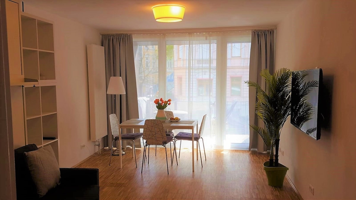 Frisch renovierte, 50 m² große Wohnung (Erdgeschoss) in ruhiger Lage, ideal für bis zu 3 Gäste. Schlafzimmer mit Doppelbett, großes Sofa im Wohnzimmer als weiterer Schlafplatz. Voll ausgestattete Küche mit Geschirrspüler, WLAN, großer TV. Waschmaschine und Trockner im Keller. U-Bahn in 8 Min., Bushaltestelle direkt vor der Tür. Viele kostenfreie Parkplätze. Kinderbett und Hochstuhl auf Anfrage. Flexible, kontaktloser Check-in über Schlüsselbox. Einkaufsmöglichkeiten und Cafés in Laufnähe.