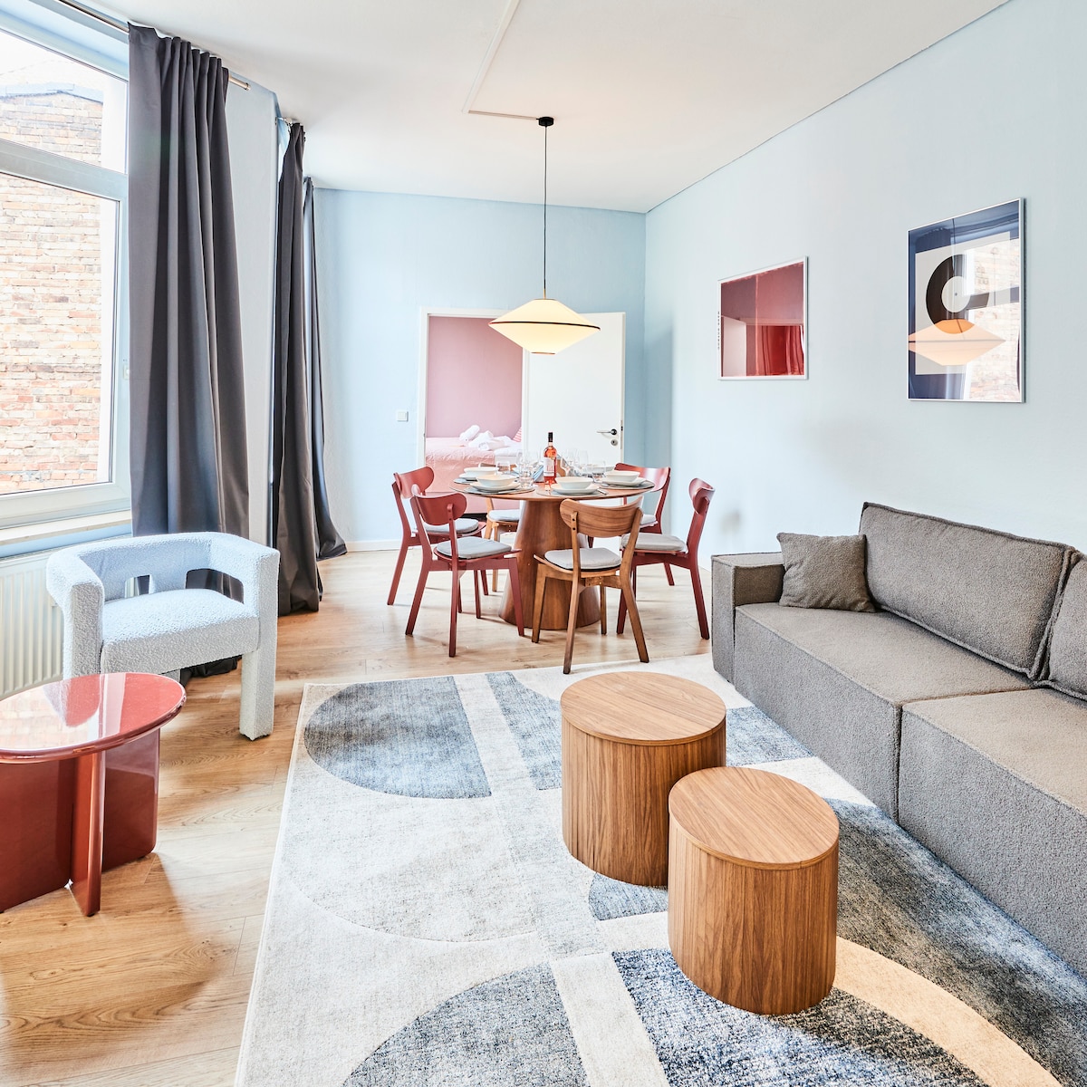 时尚且位于中心的公寓,可住5位客人,65平方米,位置绝佳