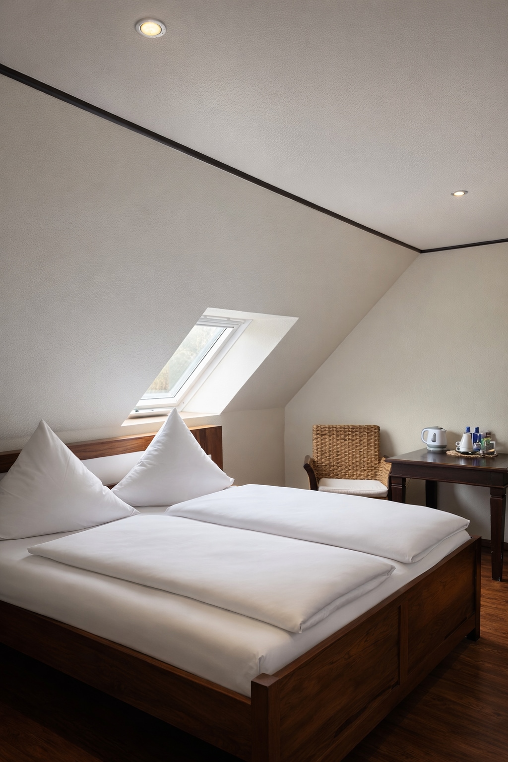 Modernes Business-Zimmer für 1–2 Personen – ideal für Messe, Termine oder Citytrip. Dich erwarten ein bequemes Bett, Schreibtisch, WLAN und TV für konzentriertes Arbeiten und entspanntes Abschalten. Das offene Bad sorgt für Komfort, praktische Extras wie Safe und Nespressomaschine runden den Aufenthalt ab. Frühstück kann optional als Zimmerservice hinzugebucht werden.