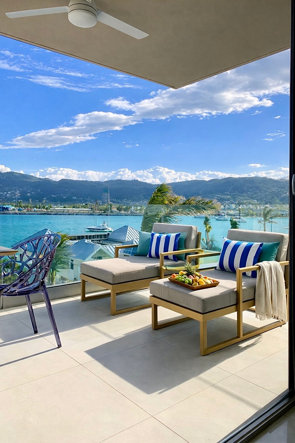 Discover the sights and sounds of Mobay and Jamaica from this contemporary, comfortable apartment with partial sea view (full view from outside space). Conveniently located to activities, beaches, restaurants and shops in a small, private and secure gated complex. Natural light and air floods this apartment, step out onto the balcony to breathe easy. Ceramic floors, quartz kitchen countertop and rain shower. Smart TV, Queen size bed, A/C in the bedroom, washing machine and dryer.