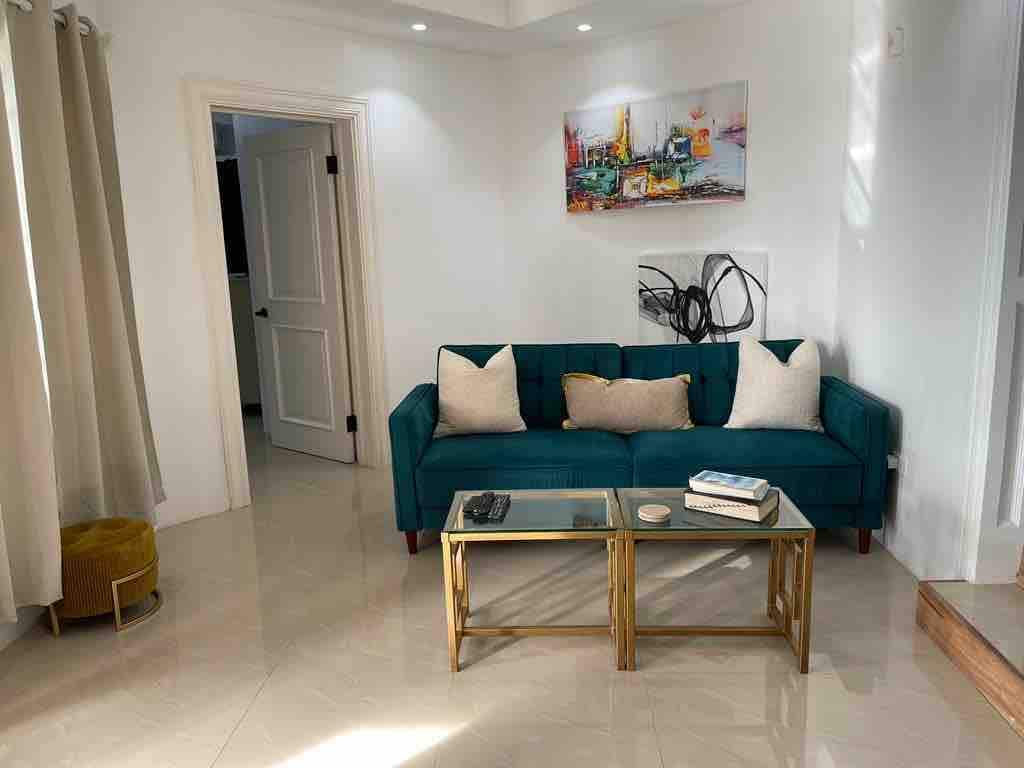 Relax with the whole family at this peaceful place to stay. Newly gated community 24/7 Security This 2 bedroom with 1 bathroom has all the necessary amenities and is centrally located so as to easily access restaurants, supermarkets,pharmacies, beaches, hospital and local cultural attractions. Newly built house and tastefully furnished, this living space is homely with WIFI, Smart TVs, Alexia, electric fire place, air condition, washer & dryer, king & queen bed, laptop.
